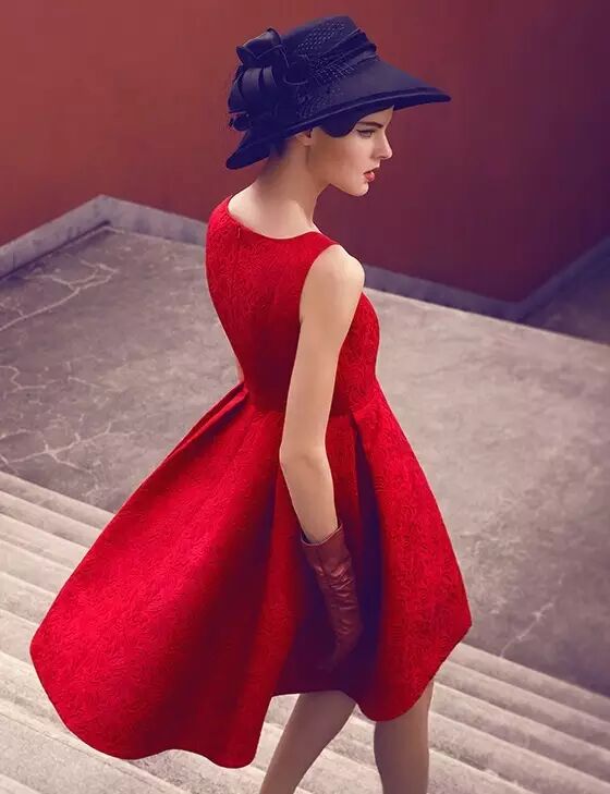 日常裙装红色是十分衬托肤色的颜色红色小短裙使人变得活泼可爱