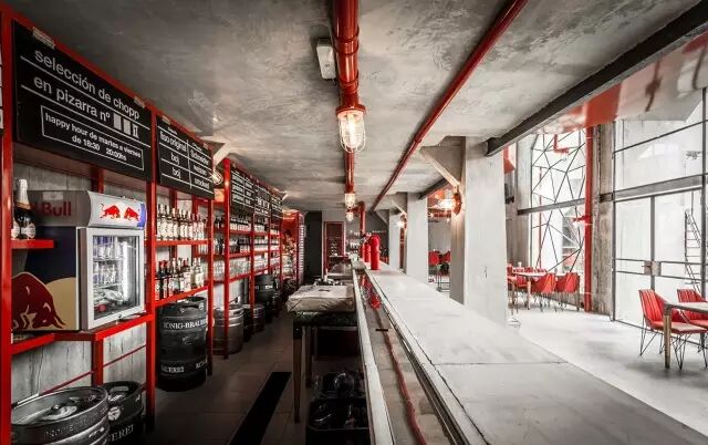 它是一个巨大的酒吧水泥、钢铁和玻璃的结构总面积超过500平方米