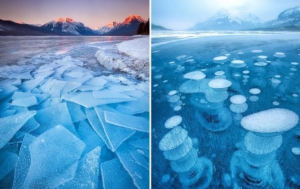 冰湖,连气泡都被冻住啦