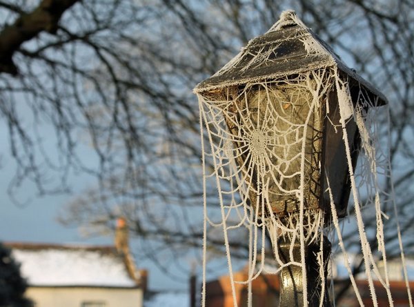 蛛网结冰,像不像上帝织出来的蕾丝?