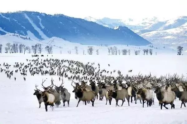 成千上万只高角鹿穿越雪地迁徙