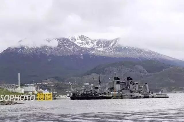乌斯怀亚大街上还是显得冷凉,这里比较靠近南极,虽说是夏季,可是下雨、下雪是很正常的事情。在街上逛了一圈就开始下雨。海边的风更加冰凉,几艘二战时期的旧船停靠在海边,也是这里的纪念品。