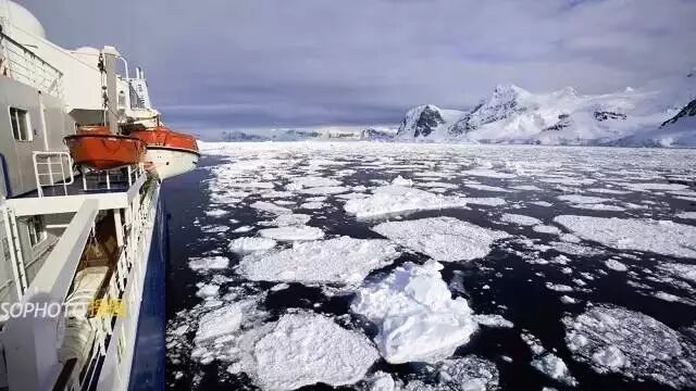 早晨6点多,我被船体与浮冰的摩擦声吵醒,向窗外一看,海面上到处都是浮冰,远处还有大小不一的冰山。起来去驾驶室,看到船长和和大副们在谨慎小心的观察海面上浮冰的情况,船只从一些浮冰之间挤过去。罗克洛伊港到了,这里是利马尔水道,左侧是南极大陆,右侧是南极半岛,两边景色十分壮美。