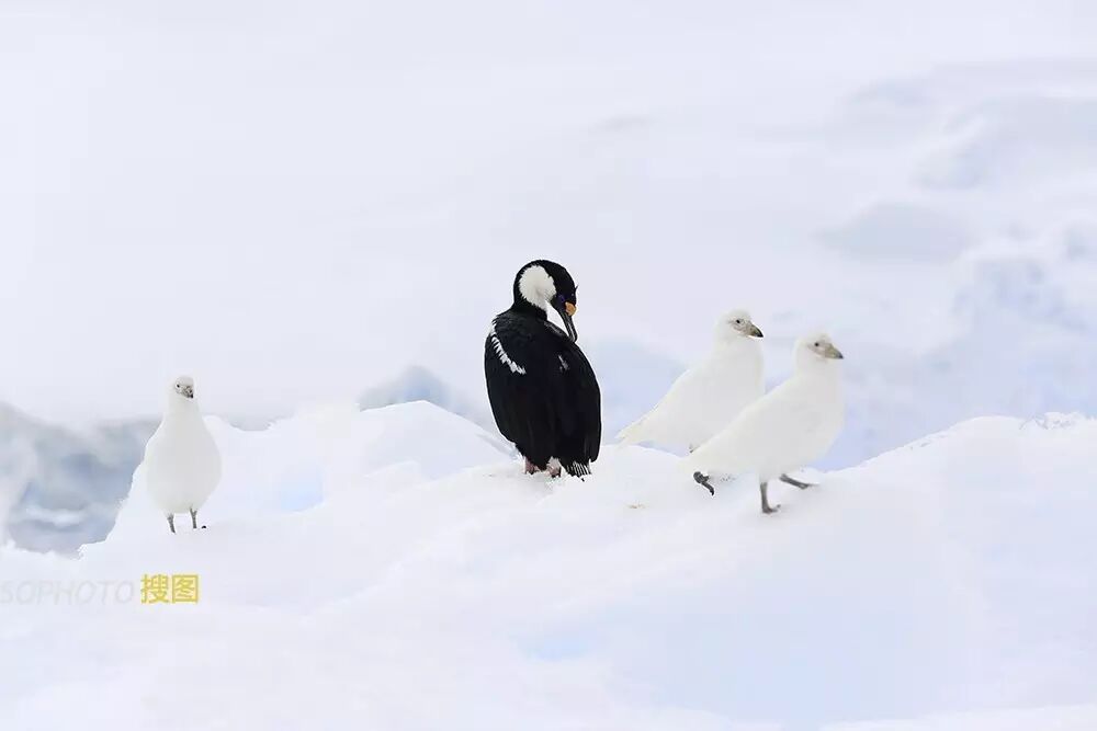 还看到一只黑色的蓝眼鸬鹚,还一有群白色红嘴的鸟,这里的鸟类和企鹅一样都不怎么怕人。这里的冰山也很好,蓝色、近乎黑色的冰都能看到。