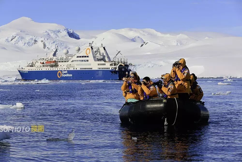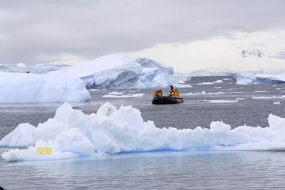 玩的很嗨,驾驶冲锋舟的大胖子直接开着冲锋舟冲到巨大的浮冰上面,令大家一阵兴奋。