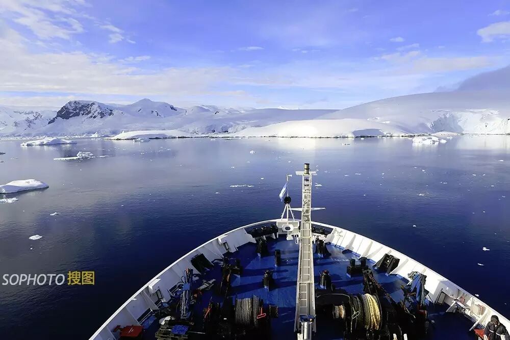 早晨6点10分,窗户外浮冰漂满了海面,去驾驶舱看看。这两位俄罗斯船长把船只开进来水道的尽头,冰川断裂的浮冰到处都是,船的尽头已经被浮冰堵死,不过能这个港湾的尽头观赏这样的美景也很难得。这里已经无法登陆,船长又调转船头往回开,寻找可以巡游或者登岸的地方,以满足大家的感受之旅。
