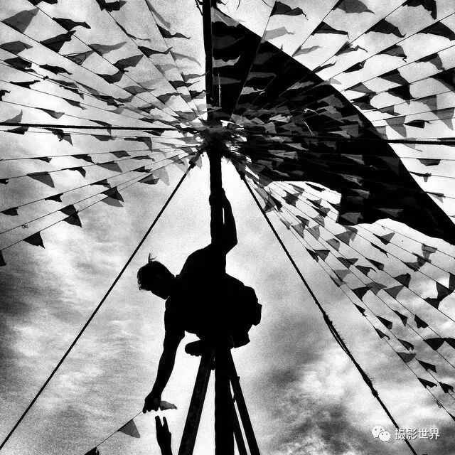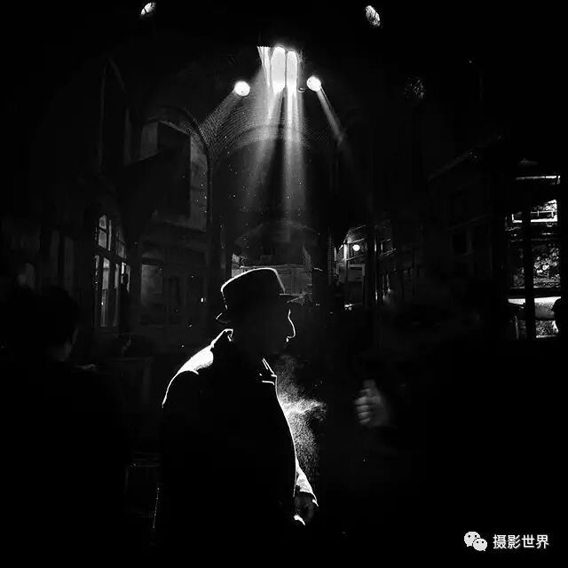 强烈的黑白对比使照片的情绪更剧烈,大范围的暗部则赋予了照片更强的故事性和神秘感。