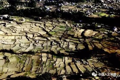 尽管加德满都地势总体来说比较平坦,但是,从空中拍摄的当地田地看,还是以小片经营的农田为主,这些小片的农田错落有致,给人以梯田的感觉。