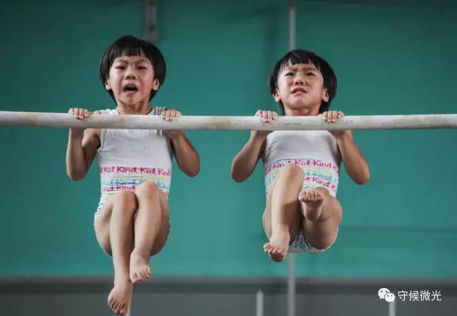 山东济宁一个体育学校,一对双胞胎姐妹练习体操的日常生活。