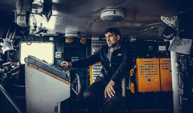在一艘渔船的舵手在白令海。Alexey Munich(俄罗斯)