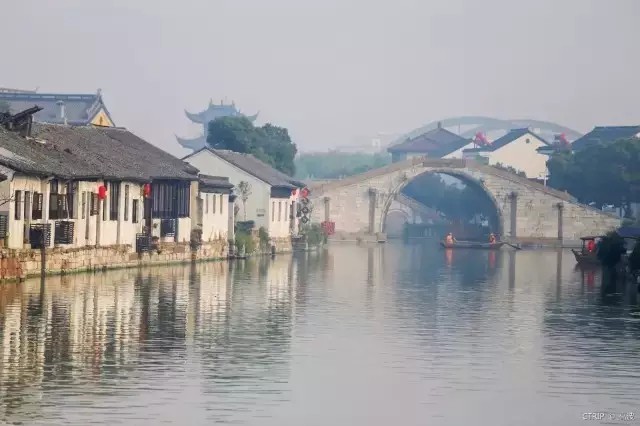 清晨透过黎明河流上氤氲的薄雾,此时的周庄如同凸现在一片画布上,清新而温婉。