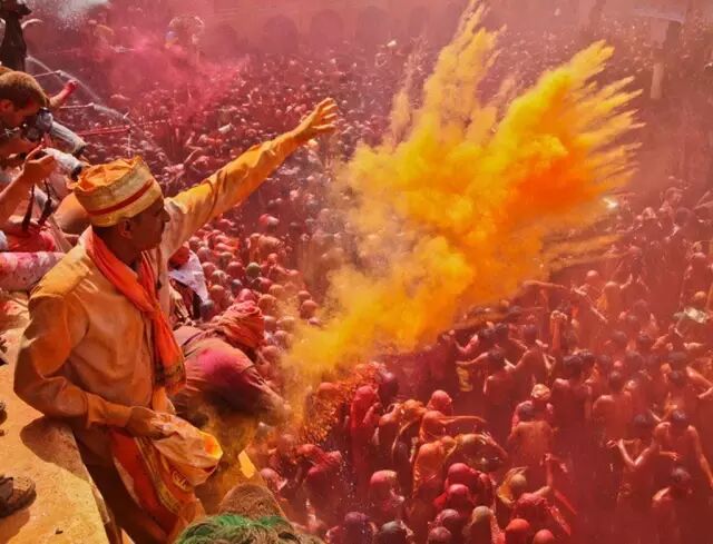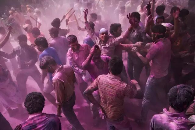 印度一年一度的胡里节,人们互相挥洒着祝福,狂欢的气氛被这张照片中飞舞的彩色粉末充分渲染出来,摄影师在抓拍这张照片时,人物的动作和形态也充满动感,时机恰到好处。