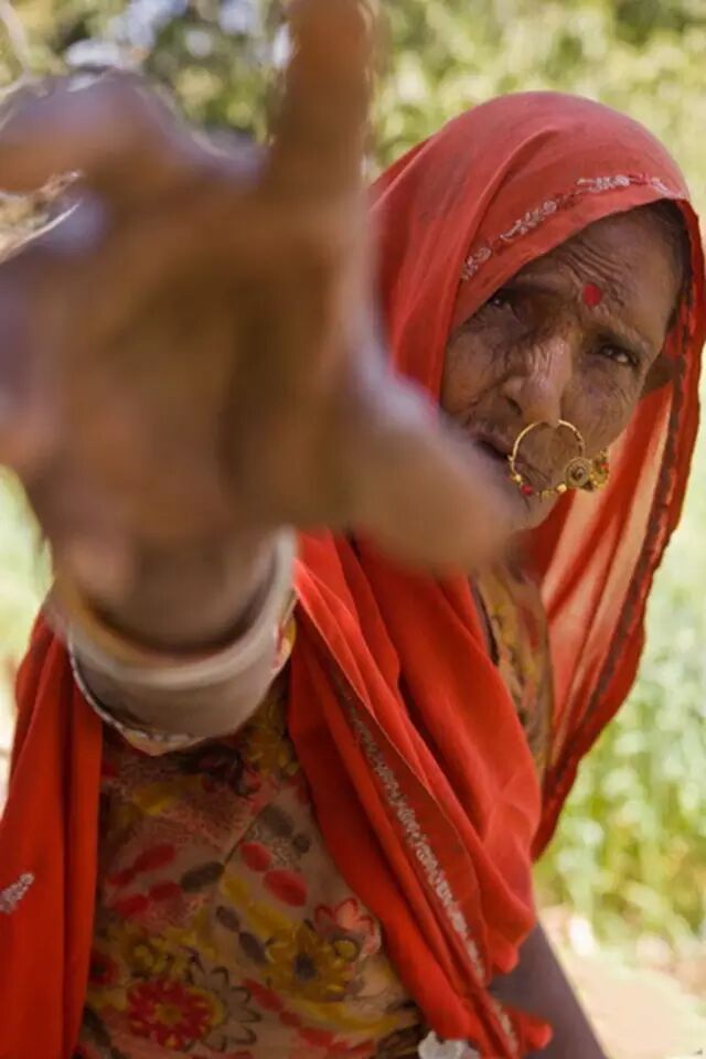 一位印度老人伸手向摄影师表达着什么,本来打算拍摄一张标准老者肖像的摄影师敏锐的抓住这个时机,按下了快门