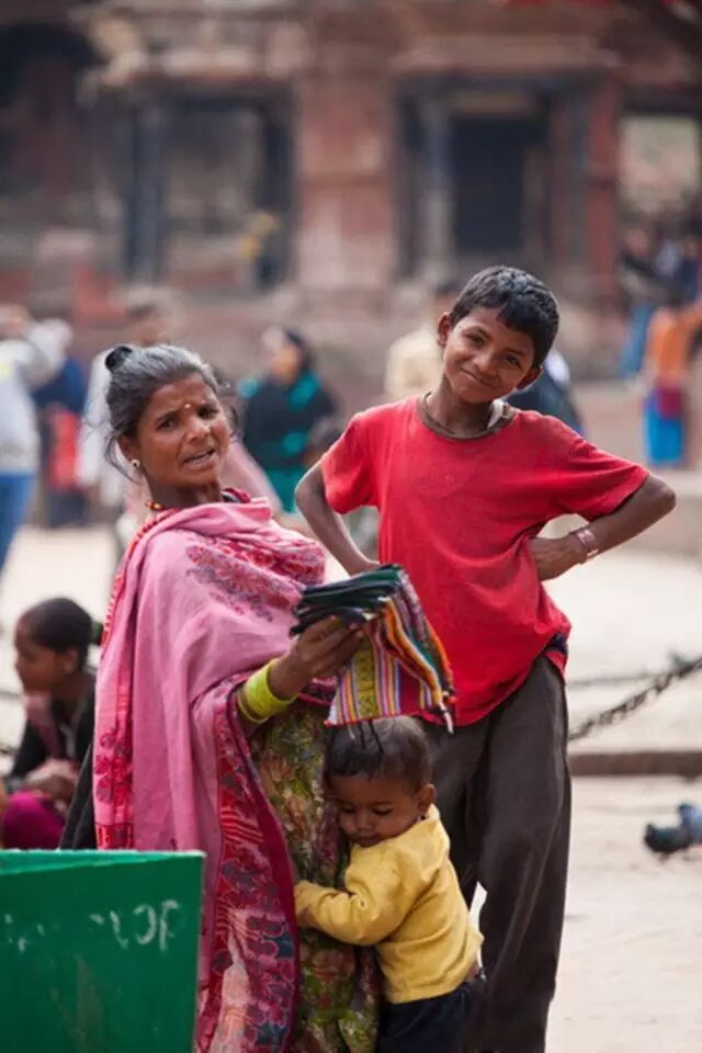 尼泊尔街头抓拍的照片,使用长焦镜头拍摄一位中年女性和他的两个孩子,从画面中可以看出,年龄大些的孩子面对镜头毫无惧色,摆起POSE,而年幼的孩子只顾在妈妈的怀里依偎,母亲的眼神则表露出生活的艰苦
