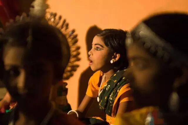 摄影师在一场印度歌舞表演的剧场里,悄悄走进了演出的后台,跟拍这些小演员们彩排训练时的真实场景