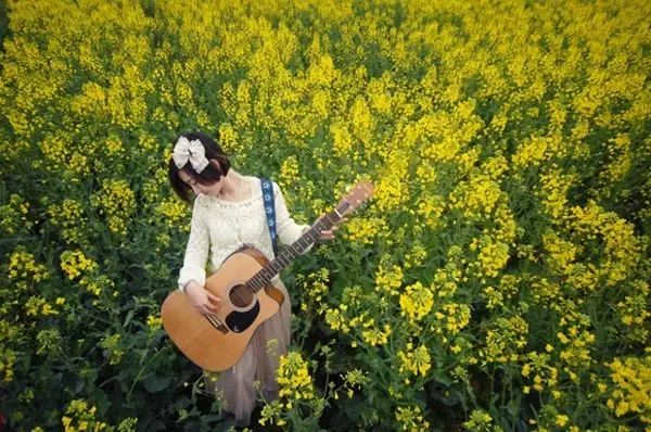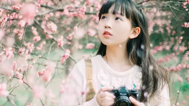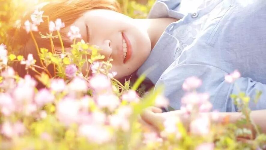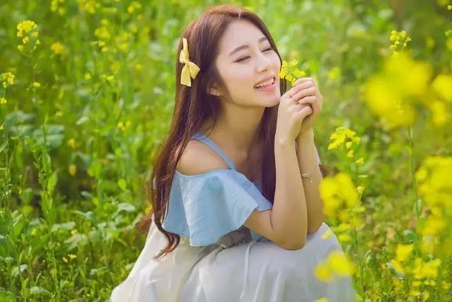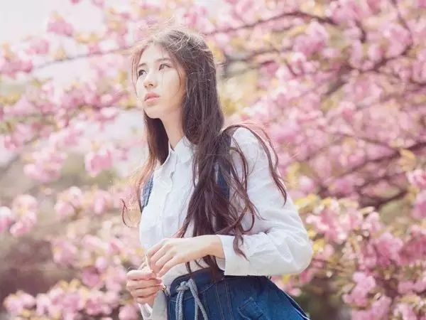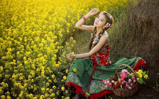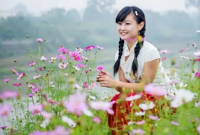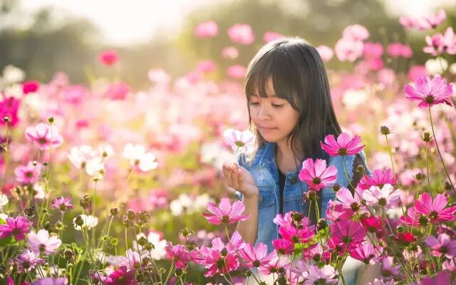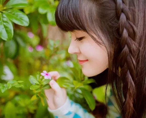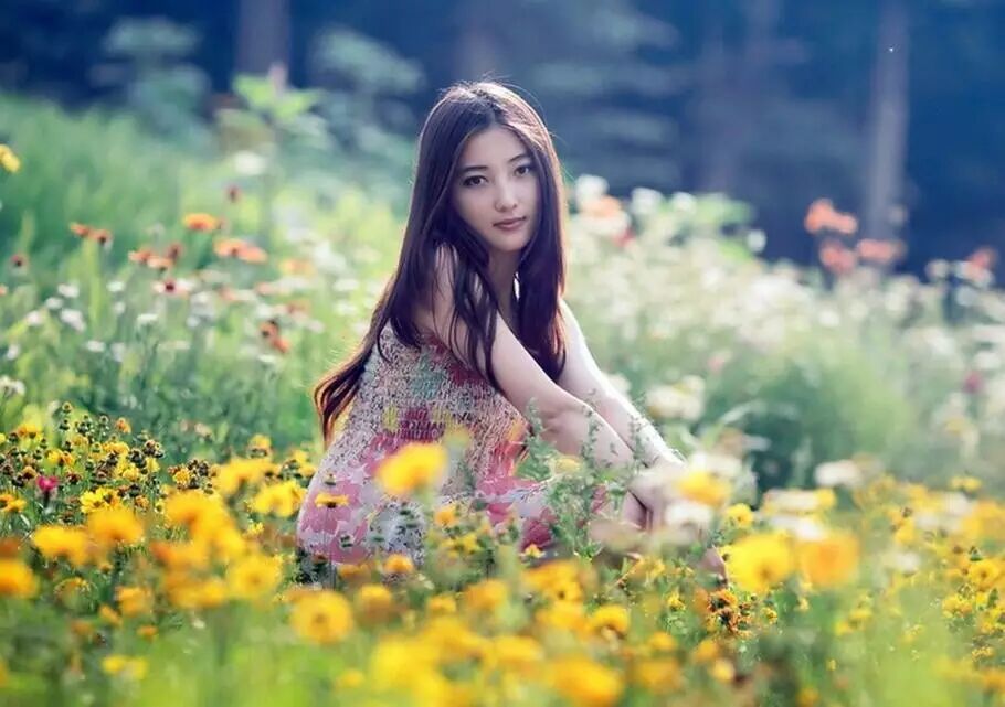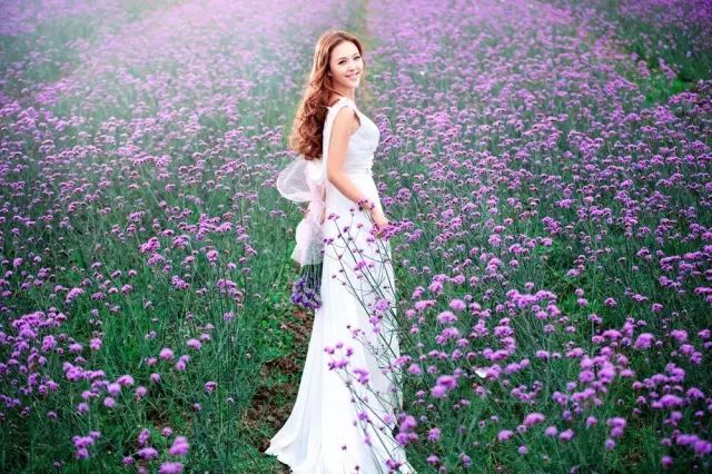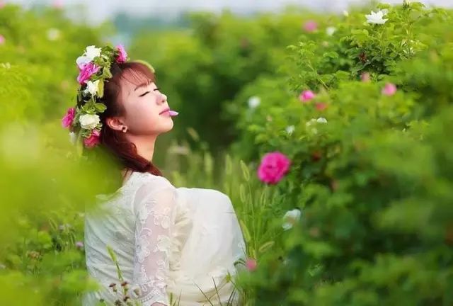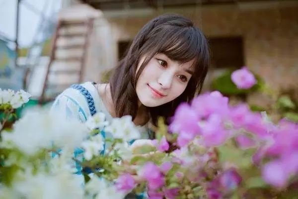 花丛中的娇美人,可以低头看花沉思,也可以看远方。