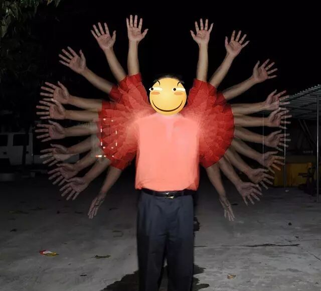 找个暗背景(曝光问题),拍个单人版千手观音: