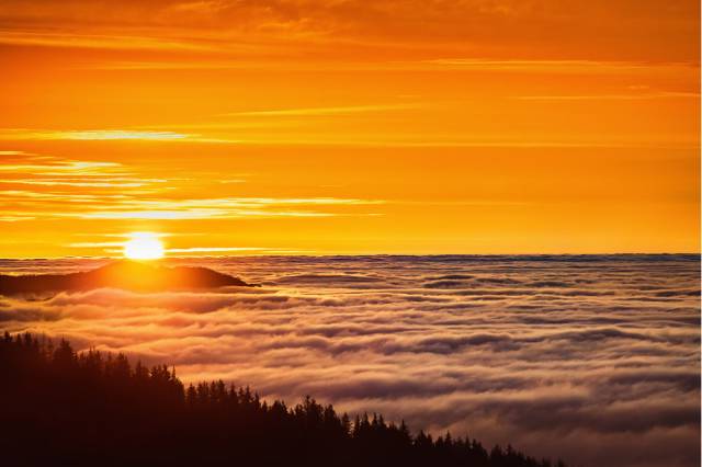这一项也是最重要的,当初升的太阳冲出云雾的枷锁,喷破而出的瞬间,是多少摄影爱好者追求的大美景色啊。