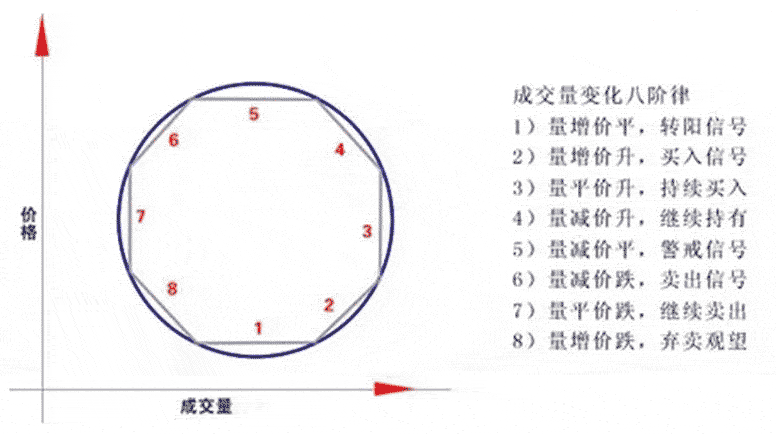 许多股民投资者对于成交量变化的规律认识不清,K线分析只有与成交量的分析相结合,才能真正读懂市场的语言,洞悉股价变化的奥妙。这里将成交量变化八个阶段总结为“八阶律”。