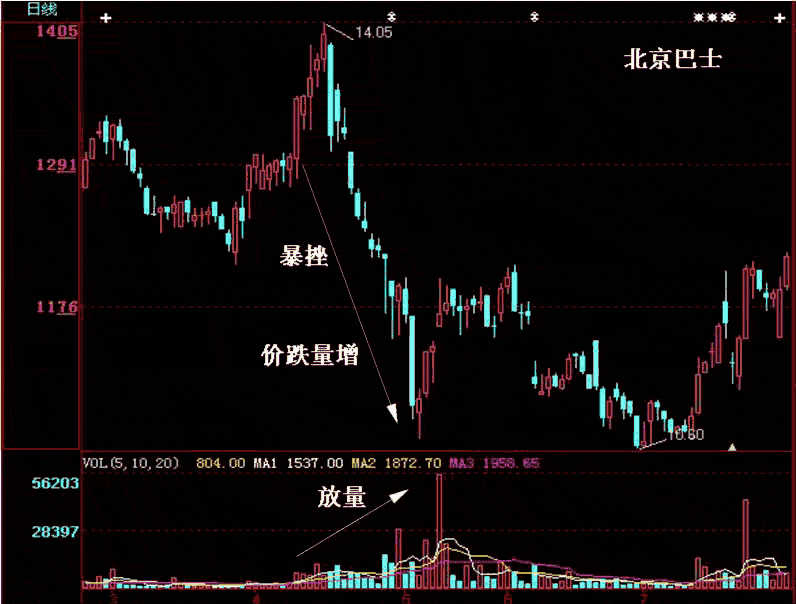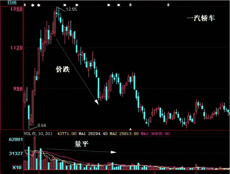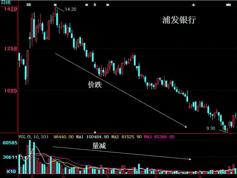 8、量增价跌,弃卖观望:股价经过长期大幅下跌之后,出现成交量增加,即使股价仍在下落,也要慎重对待极度恐慌的“杀跌”,所以此阶段的操作原则是放弃卖出空仓观望。低价区的增量说明有资金接盘,说明后期有望形成底部或反弹的产生,适宜关注。有时若在趋势逆转跌势的初期出现“量增价跌”,那么更应果断地清仓出局。