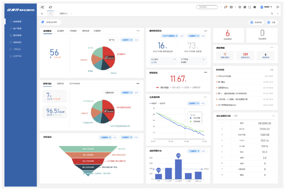 而过往的目标数据还能沉淀到任我行CRM系统中,多维度的数据报表可以最高程度给企业提供做决策的依据,帮助管理员制定下一阶段合理目标、推进目标以及结果复盘。