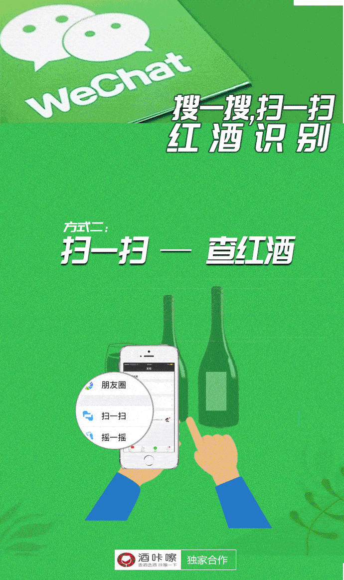 微信红酒识别服务目前具备三大入口:聊天框、朋友圈、扫码识别,涵盖微信使用的不同场景。