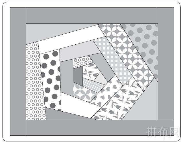 5.将裁好的一条边框长布条与疯狂拼一长边缝合,再顺时针依次缝合边框的短布条、长布条、短布条。