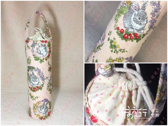 冬天过去啦,在夏天到来之前,给小水壶做一个杯套吧,选了淡粉花花兔子布,可爱一个夏天都不会嫌多,顶部做了抽绳,一拉就变成小巧的灌汤包啦~