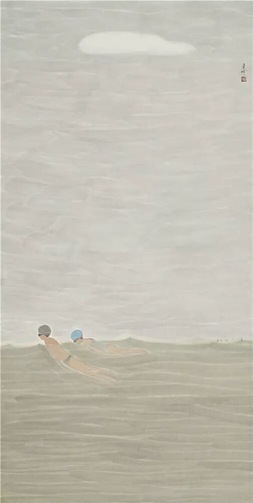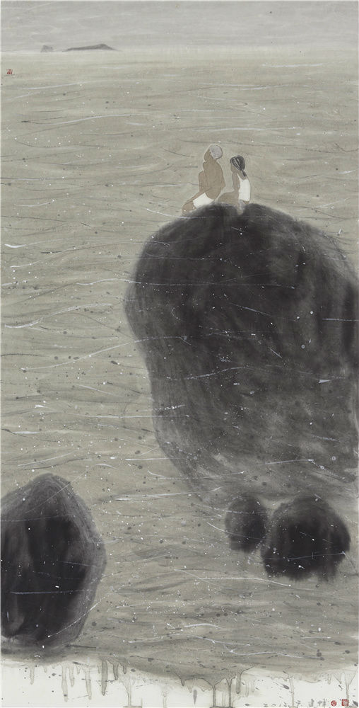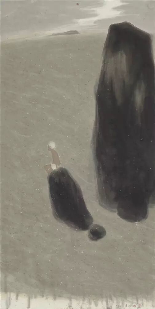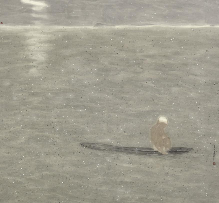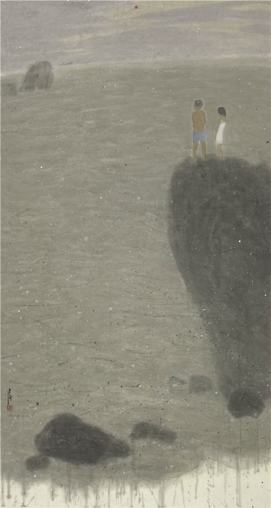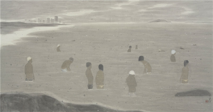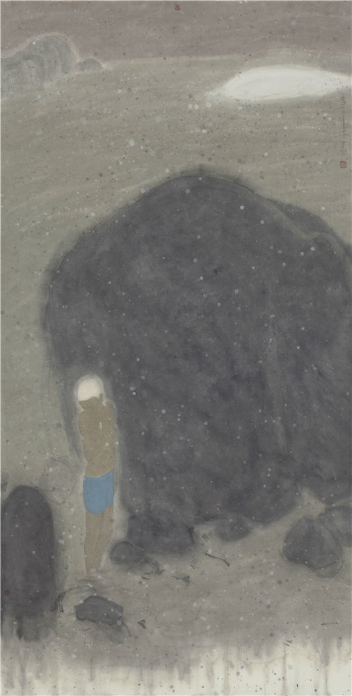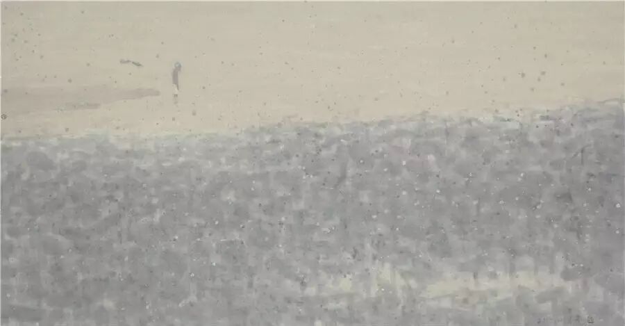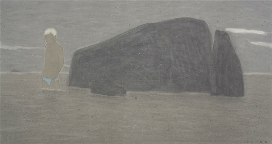 马建博:这跟我的性格、经历有关,因为我上学比较早,从小到大一直都是在班里最小,相对而言比较弱势,性格也就比较内向,喜欢静静的一个人去想事情。就是有种孤独感,这也是当下社会中,大家虽然表面繁忙,可能每个人的内心总有孤独的一面。在我的性格中,这点更突出,所以画画表现出来的人物都不是太具体,也都不穿衣服。很多借助海边的场景,人在其中只是作为自然界中的一个点存在着,而不是作为具体的人物、身份出现,只是一个自然人,不是一个社会人。另外就是表现人的内心,人与自然的和谐。