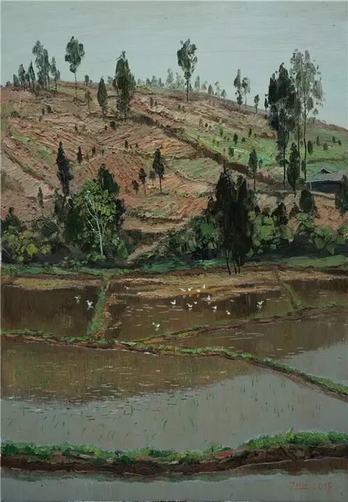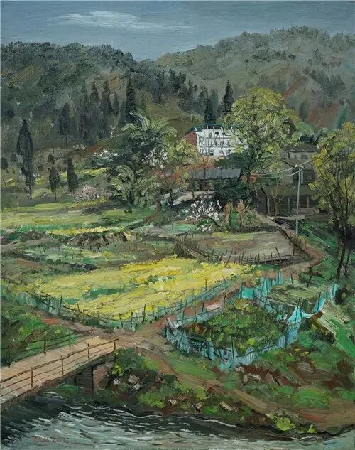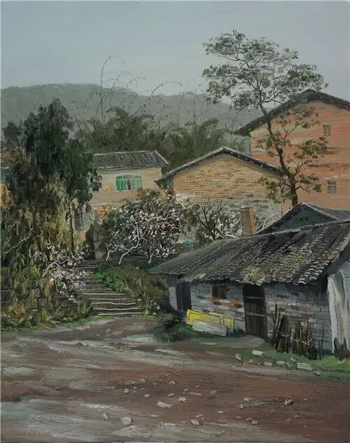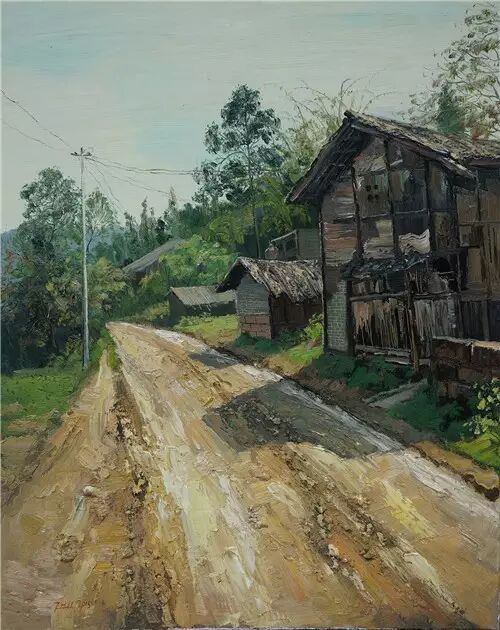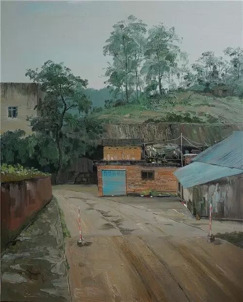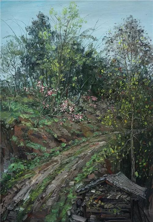 朱庆:最近的写生创作大多以城镇边缘的山村为主。这里的壮年大多都外出务工,时代的发展,生活的压力,山里的田地已经不再能满足一个家庭的生活需要。人去村空,留下四季轮回的美景无人问津。所以我在创作中避开人群,只剩下房屋,大地,树木等作为画面的构成元素。