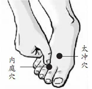 是足阳明胃经的荥穴,它在脚的第二指、第三指的中间的这个脚丫子上五分,最主要可用以治疗四肢冰冷的现象,可以用治喜爱安静而不喜欢声音的“胃经热象”,长风疹块的瘾疹现象,咽喉痛,呵欠频数及牙疼。其实频频呵欠就是缺氧了,牙疼在中医的概念上面,认为牙属于阳明,下牙属手阳明大肠经,上牙属足阳明胃经,这里的牙疼就是上牙疼。另外虚极而不能吃东西,针这个穴立刻就好了。