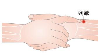 是肺经的络穴,叉交大拇指与食指,而食指指到在手腕的上侧的挠骨边缘就是这个穴,可用以治偏头痛,还可以治疗遍身麻痹,痰涎向上涌出,牙齿咬紧的口噤,如果能补泻得宜,应手就可以好了。《四总穴歌》有“头项寻列缺”,就是说只要头部的与颈项的病都能用此穴治疗。