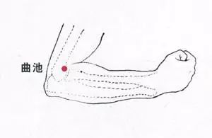 是在手肘上面的手阳明大肠经的合穴,找寻的方法是:手臂稍微弯曲起来,把手掌对着自己的心脏,手臂上最高的这一条经络线就称之为“手阳明大肠经”,在这个经络上面的手肘弯弯处的穴道就叫做“曲池穴”,马丹阳天星十二穴歌说“曲池拱手取”,拱着手找寻;“屈指骨边求”,在骨头的边缘可以找到它;