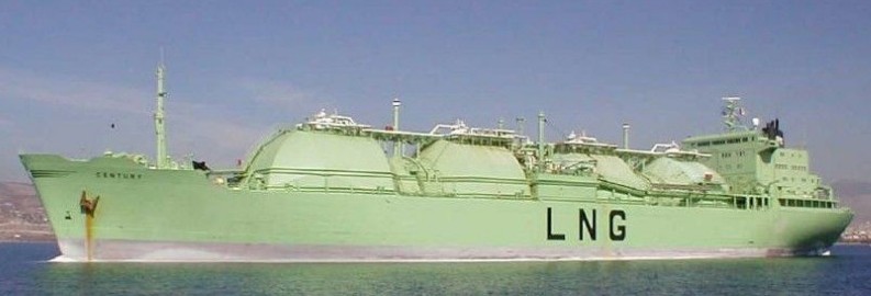 CNG船:CNG船运输的是在常温下压缩的天然气(与LNG相比其运输的天然气存在状态有差异)