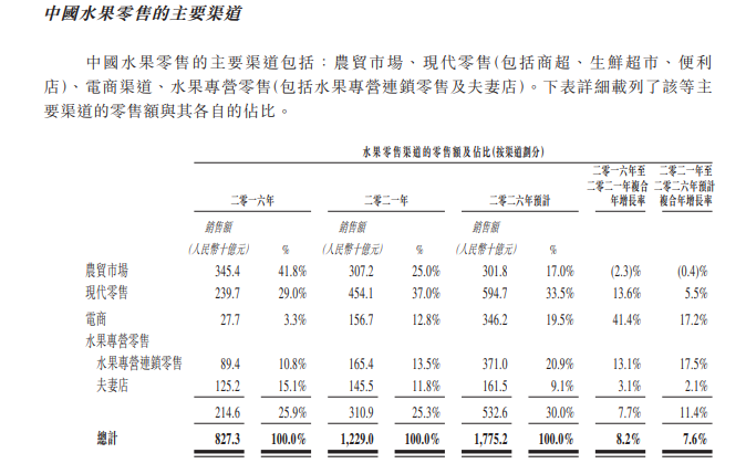根据弗若斯特沙利文,水果行业损耗率普遍在35~45%范围内波动,叠加多层次分销成本后,行业利润率较低。