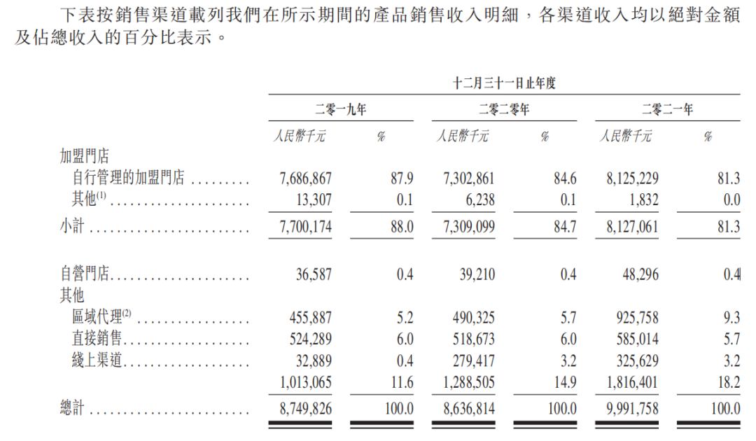 11.2%是百果园的综合毛利率,于加盟门店端其毛利率约为9.2%,而自营门店则是27.3%,要注意的是:9.2%都是百果园销售给加盟门店商品的毛利率,而不是加盟门店的,百果园从加盟门店获取的收入,相当于加盟门店的成本。从消费者的角度看就是,百果园相当于中间商,从加盟门店处赚了一波差价,差价就是百果园从加盟门店处赚取的毛利。