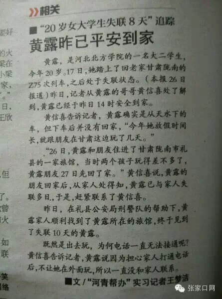 1月29日晚9点左右,联系到了黄璐哥哥,黄璐哥哥告诉记者,黄璐是和同学一起出去玩了,1月28号已经回家了!至于为什么失联十多天,哥哥表示,黄璐一开始是忘了和家人说明情况。到了后来,因为担心家里人责备,索性就不再接家里的电话了。结果造成了巨大的误会。