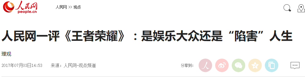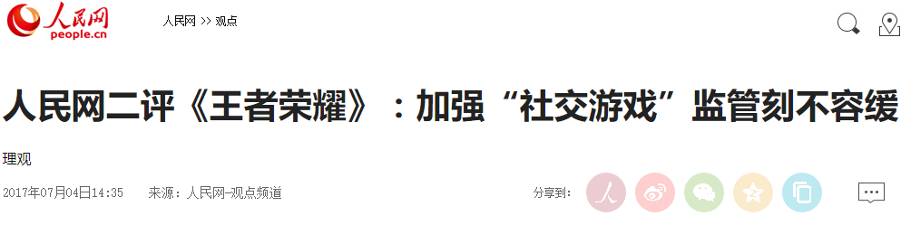 7月3日下午和7月4日上午,人民日报两评《王者荣耀》,可见这种现象级的事件已经上升到了国家关注的层面。