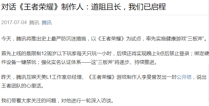 另一方面,腾讯官方微信公众号在7月4日推送了一篇访谈录