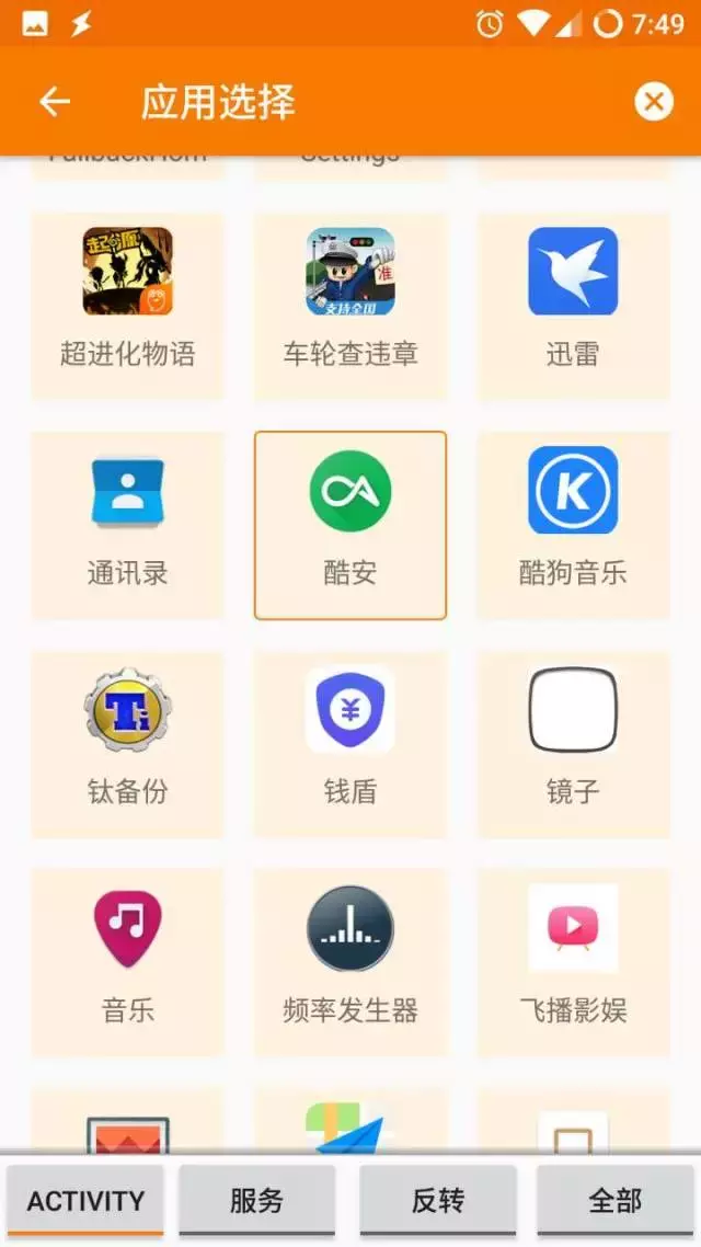 选择应用程序,在程序列表中找到你想要作为触发条件的应用程序,比如酷安