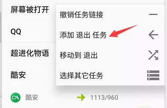 选择添加退出任务,也就是酷安当不被激活状态下执行另外一个任务,我们设置为940/652