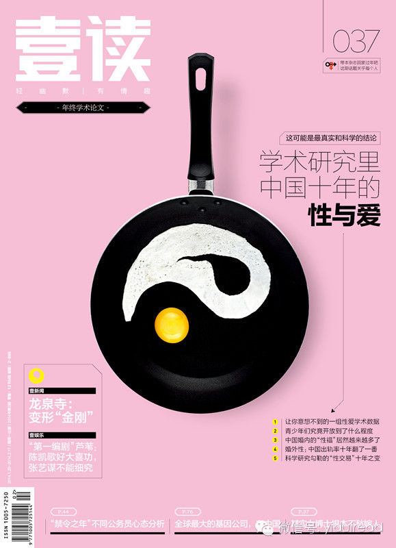 第37期壹读《学术研究里中国十年的性与爱》,你尽可以大方翻阅,检视那些你早已心知肚明或者大吃一惊的数据: