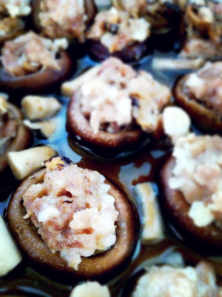 肉香菇——这是妈妈最近做得最多的菜。猪肉和木耳还有干香菇和在一起剁成肉馅,用酱油和蚝油按妈妈传说中的“靠感觉”比例腌渍好。把肉馅放在新鲜香菇的白花花的肚子上,噢你说香菇哪来的肚子啊,你自己看看,香菇它哪儿白花花就哪是肚子。最后啊,把它们排放好放在盘子里,把熬好的鸡汤往上一淋,不可末过肉馅。开火,扣上锅盖,慢慢蒸。然后等它哗啦啦地唱着小曲儿,咕噜咕噜地冒着水泡,散发着快来吃我吧的香气,你就不要客气和矜持了,夹起一朵肉香菇,啊呜一声吞了它吧。