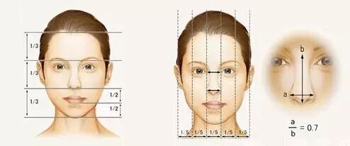 其实在中国的传统面相学中,对“美”有着严格而明确的规定,其标准就是“三庭五眼”,也就是说,美女或帅哥要满足这样苛刻的标准:脸从上到下分成三等份,额头到眉心、眉心到鼻尖、鼻尖到下颌;从左至右分成五等份,双眼的宽度与眼间距相等,鼻子与眼间距同宽。