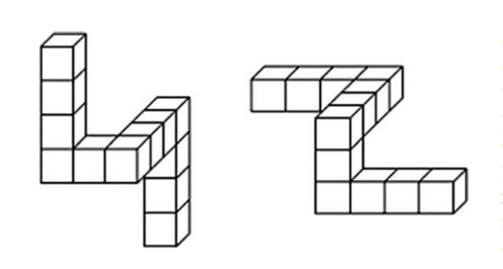 测试空间能力时经常使用的模型图,要求判断图中的两个模型是否是同一个。这类测试中,男生的分数往往要比女生高出不少