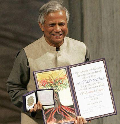 2006年该奖项由爆冷的孟加拉学者穆罕默德•尤努斯及其创建的乡村银行获得。这些乡村银行通过开展小额信贷业务,帮助本国穷人脱贫。