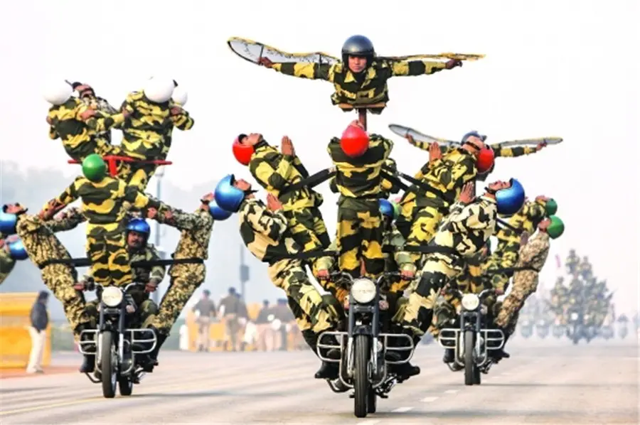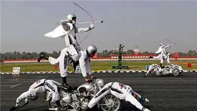 作为世界最大的摩托车市场之一,摩托特技队被印度军方看作可以与民众愉快地互动的突破点之一。包括阅兵式中的吐火和钻火圈,都是军方通过娱乐效应用来“和群众打成一片”的。