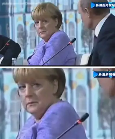 全场对这个笑话反响十分积极。身旁的默克尔对此的表情是: