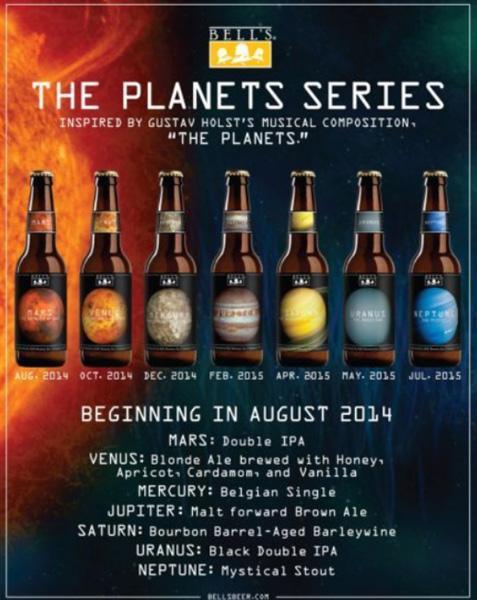 美国的一家贝尔酿造公司推出了行星系列啤酒,它们嵌入了各大行星的“味道”。比如火星的后劲会更强一些,天王星对应的啤酒更充满了气态色彩,属于混合型口味的啤酒,金星靠近太阳,则被赋予了阳气旺盛的寓意,代表充满激情的荷尔蒙,而海王星的口味与其大气成分一样都非常神秘,因为它们比较靠近太阳系的外侧轨道。