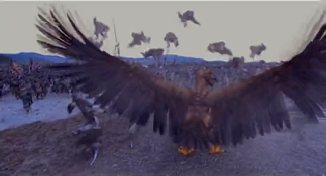 到了06年黄晓明版的雕兄,和那版的玄铁剑一样一下子变得很大,几乎有常人的两倍高。且看最后一集雕兄怒扇蒙古士兵的画面: